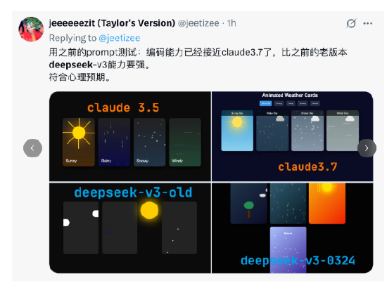· 编码能力已经接近 Claude3.7 了,比之前的老版本 v3 能力要强。